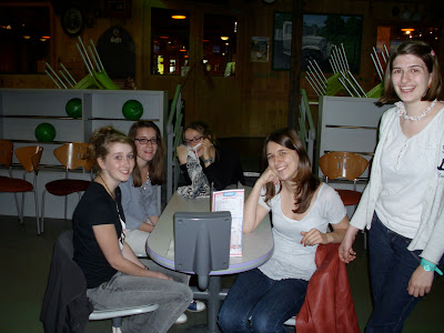 On Tuesday, we had physics, history, and PE. In physics/chemistry, we worked until the last second, doing a chapter of O-chem on the last day of school. In History, we spent the first 30 minutes listening to the teacher give some last advice for the bac. And then we watched a movie. And then in PE, we finally got to go bowling. It was supposed to be 6 to a lane, but at the end, there were 4 of us together without a lane so we got to play as just 4. But, it didn't help us finish any faster because it actually turned out that our lane had a problem. They stopped our game at the end of the 8th frame, and even after we asked 2 different staff people to help us, no one really did anything. We were not happy and wanted to play our final two frames(since we had paid 3.50 euros for the game.) We were still waiting once everyone else had finished and was off playing billiards or foosball. With just 10 minutes until it was time to go, the staff turned on two lanes for us, and we got to play a whole other game with just 2 in each lane. I ended up with a horrible 103 and came in 3rd, but I blame it on the fact that we had to play fast so I didn't have time to aim. I was winning the first game that got stopped. But it was still cool that we got to play a complete 2nd game.